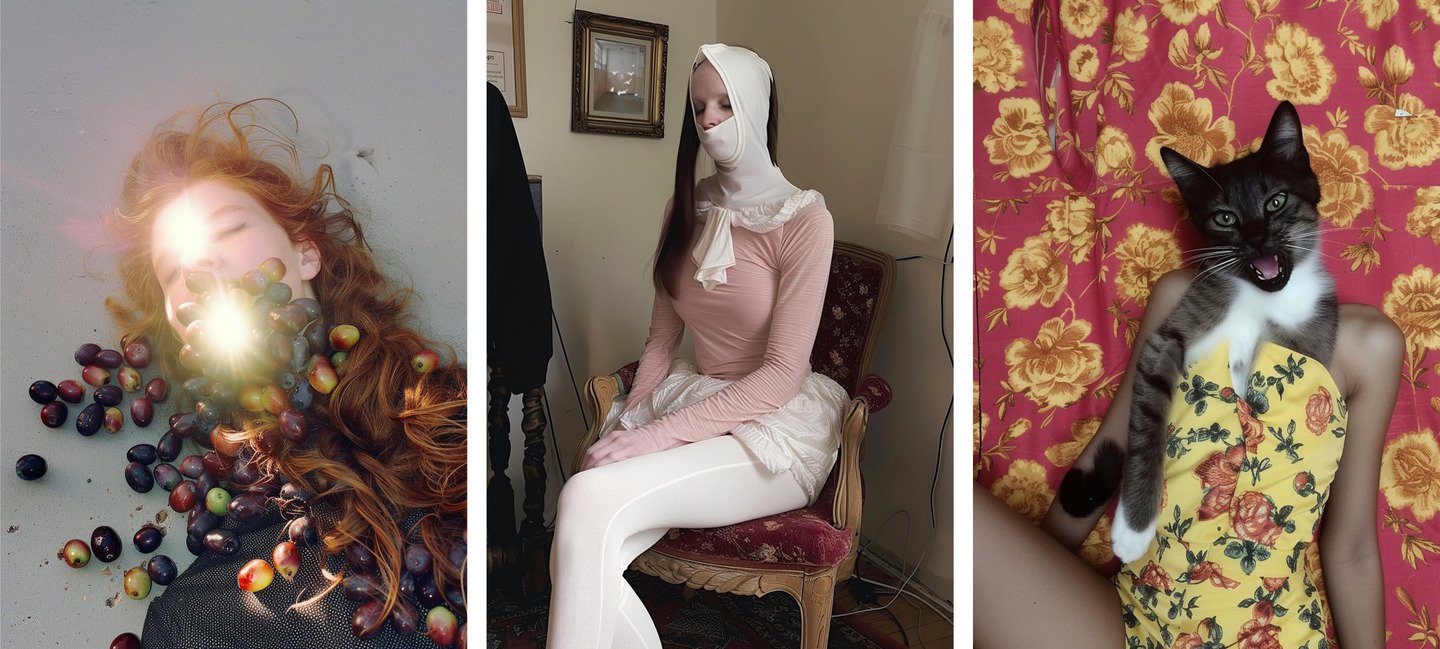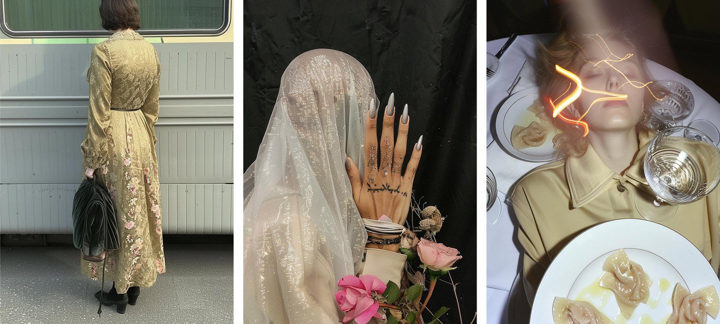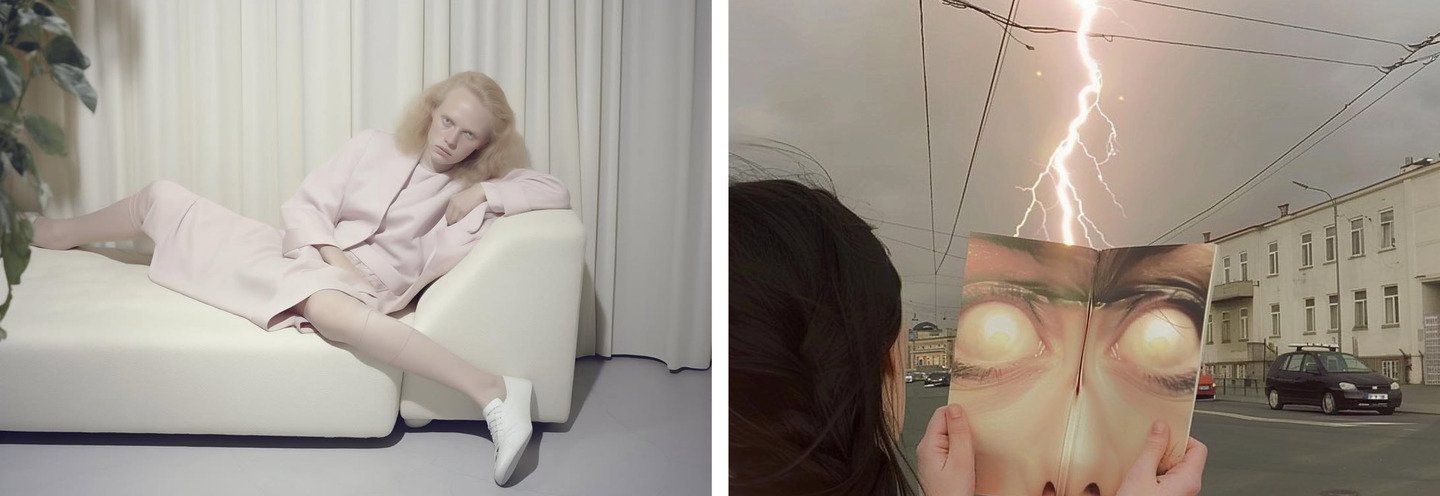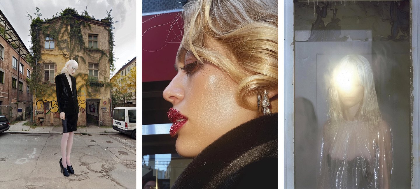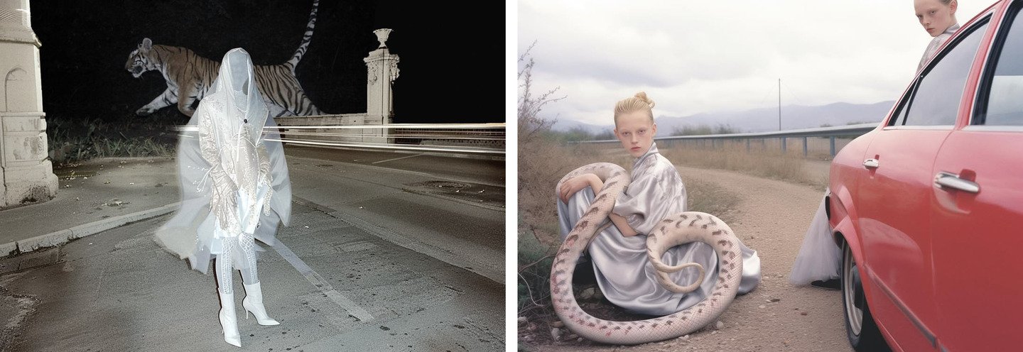 Чарли Энгман создает визуальные коллажи, комбинируя фотографии с виртуальными элементами, что создает необычные и многослойные композиции. Эти работы не только демонстрируют потенциал технологий в художественном выражении, но и вызывают философские вопросы о том, что значит быть художником в эпоху машинного интеллекта. Чарли Энгман ставит под сомнение границы между реальным и виртуальным, создавая новые формы искусства, которые стимулируют обсуждение на стыке технологий и моды.