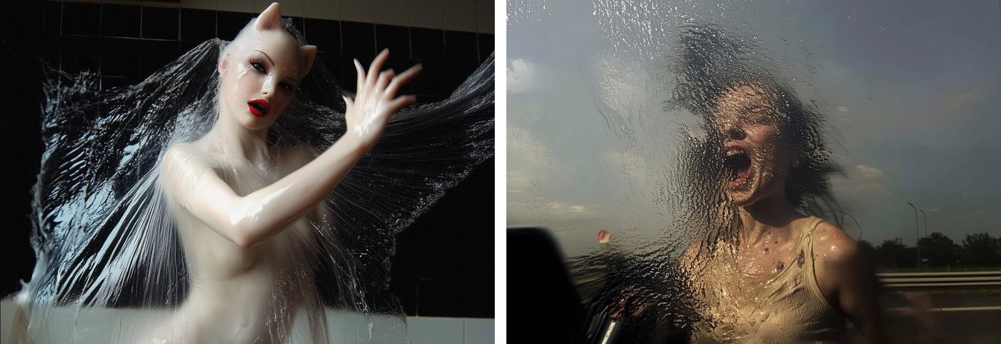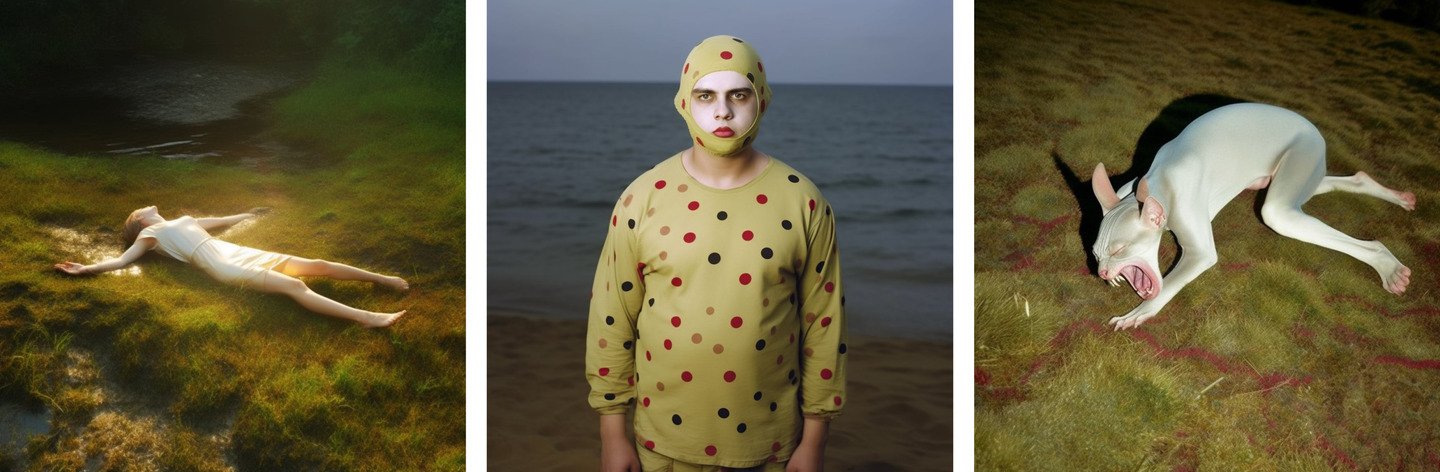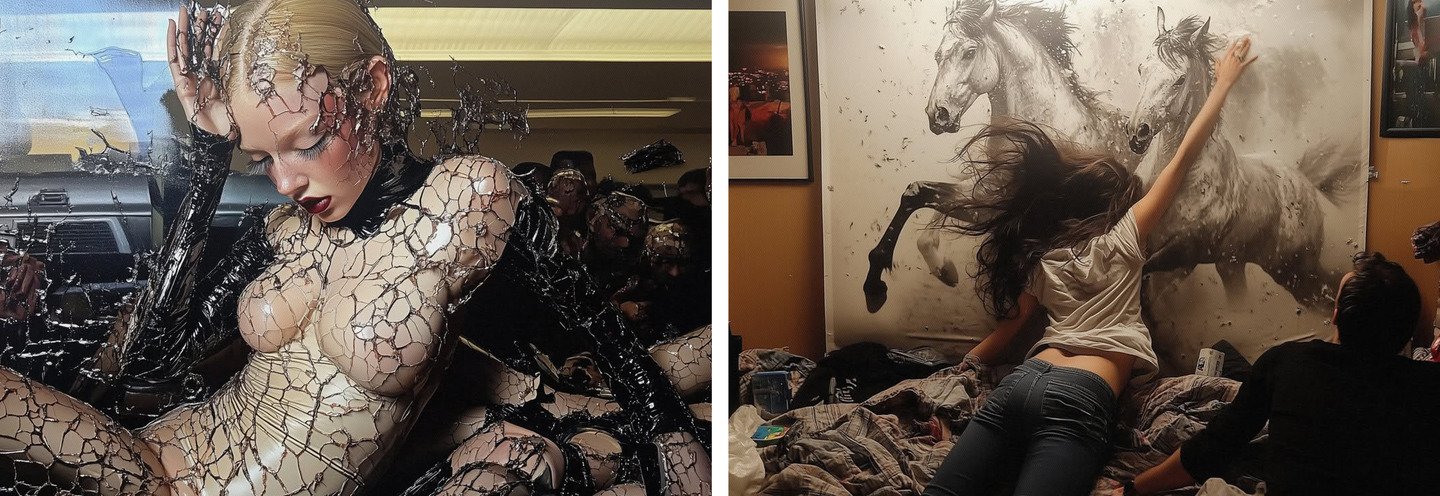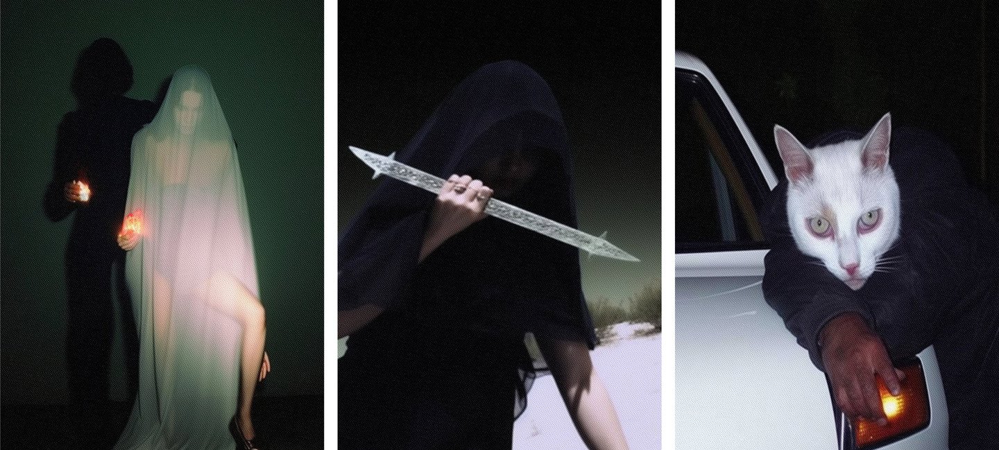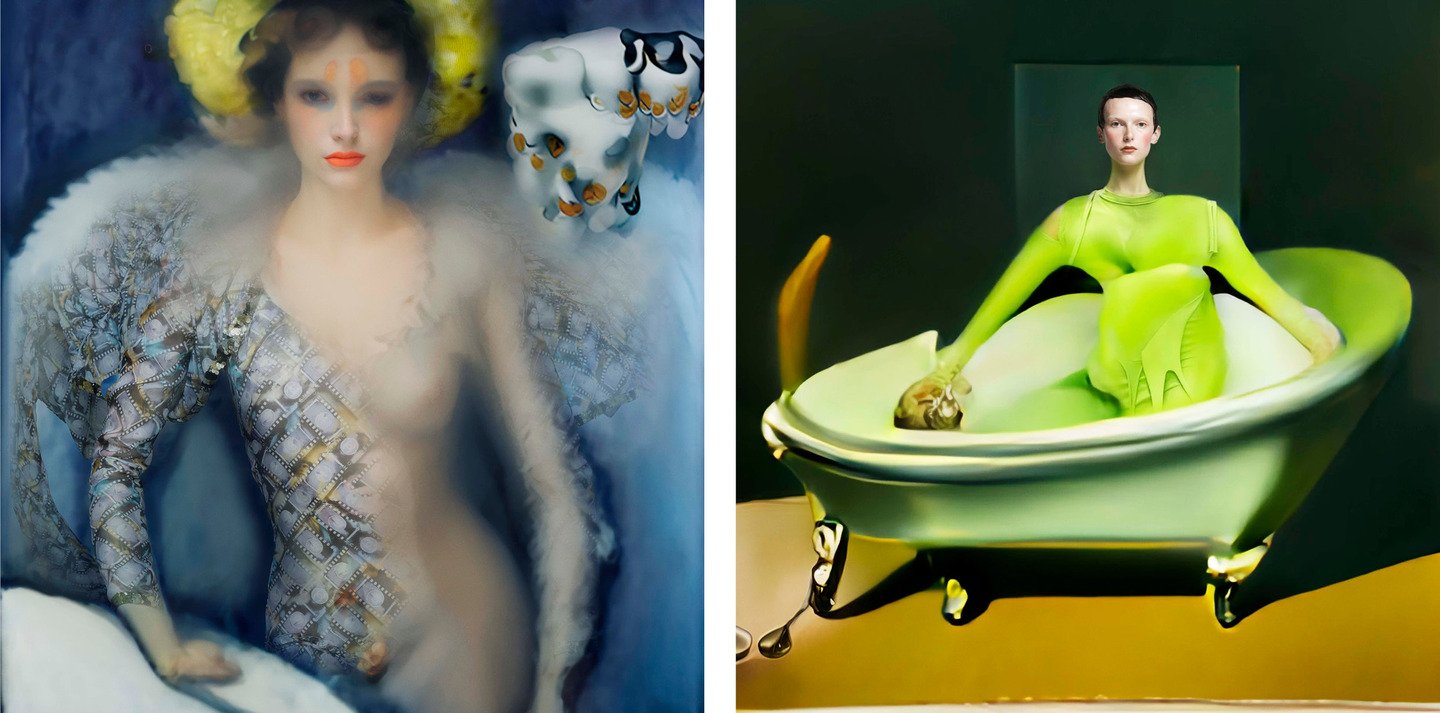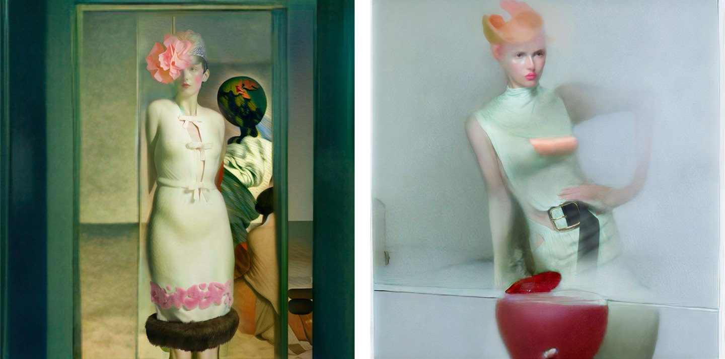 Чарли Энгман создает визуальные коллажи, комбинируя фотографии с виртуальными элементами, что создает необычные и многослойные композиции. Эти работы не только демонстрируют потенциал технологий в художественном выражении, но и вызывают философские вопросы о том, что значит быть художником в эпоху машинного интеллекта. Чарли Энгман ставит под сомнение границы между реальным и виртуальным, создавая новые формы искусства, которые стимулируют обсуждение на стыке технологий и моды.