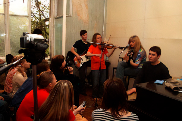 Ранее мы рассмотрели формат квартирников, где один человек берет на себя всю организацию мероприятия. Стоит отметить, что на таких встречах обычно собирается более зрелая аудитория. Это неудивительно, ведь именно эти люди выросли в эпоху, когда квартирники были особенно популярны. Значит ли это, что молодые музыканты больше не устраивают квартирные концерты? Не совсем так, концерты, которые происходят непосредственно в квартире, обычно организуют малоизвестные группы, приглашая туда своих друзей и знакомых. Поэтому найти какую-либо документацию о таких мероприятиях крайне сложно, а порой и вовсе невозможно. Популярные же музыканты могут устраивать имитации квартирников.