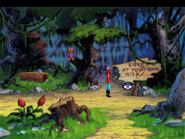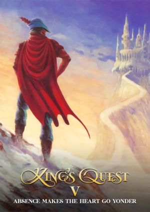 Геймплейный экран игры King’s Quest V (слева) и её обложка (справа)
