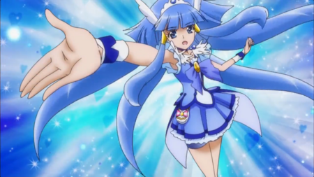 Девушка в голубых оттенках — вспыльчивая и резкая Саяка, образ которой построен на рыцарской тематике, что соотносится с её предысторией становления волшебницей. Та, положила на кон свою жизнь ради счастья и заветного желания человека, который ей нравился.