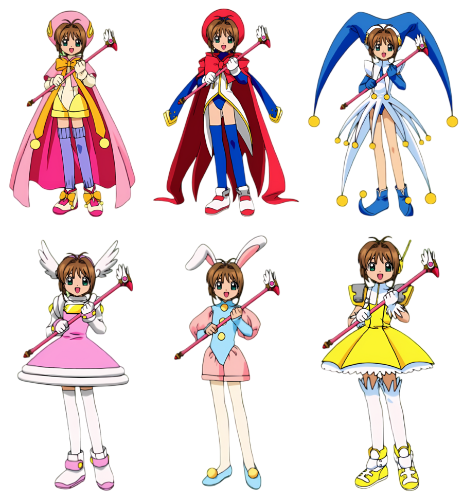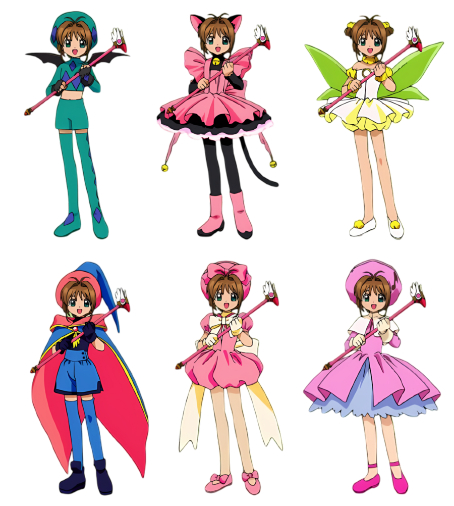Отличительной особенностью «Сакуры собирательницы карт» являются её наряды. По сюжету, волшебный посох не превращает её саму, а является только катализатором силы.