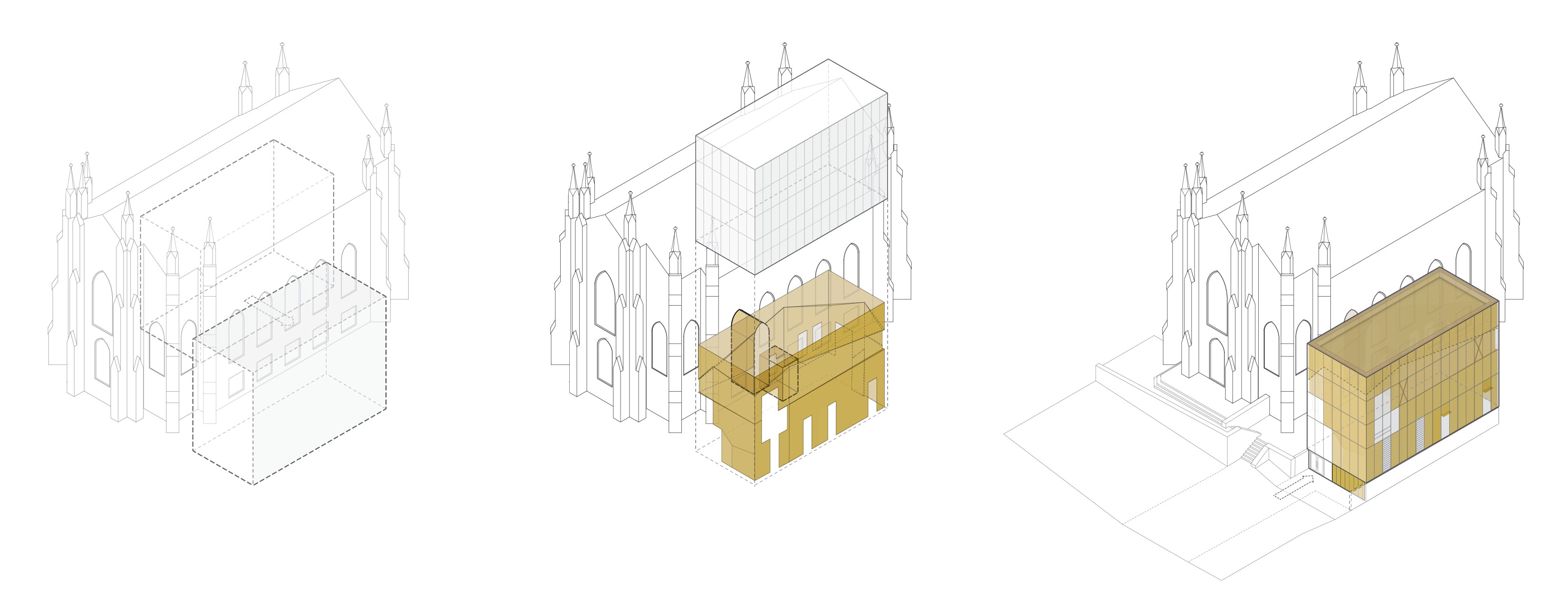 Для архитекторов создание проекта адаптивного повторного использования церквей может стать уникальным опытом, так как работа с памятником — это соблюдение определенных рамок и норм, что помогает познать суть архитектуры. [1]