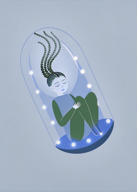 Рабочая cloth-симуляция. Пряди устремились вниз под действием физики