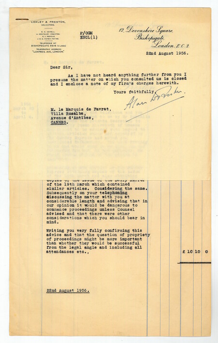 16. Князь Монако Луи II. Письм, напечатанное на именном бланке. Монако, 1940. 20,9×14,6 см