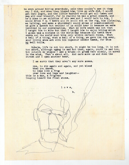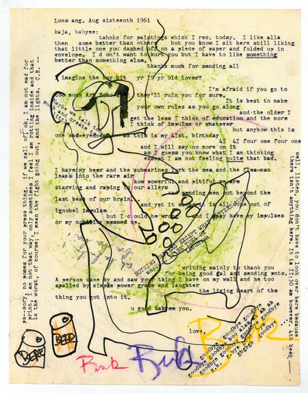 25-26. Чарльз Буковски, немецко-американский поэт, прозаик. Письма подписаны («Бук», «Буковски» и «Бук Бук Бук»). Лос-Анджелес, июль–ноябрь 1961 года. Формат неизвестен