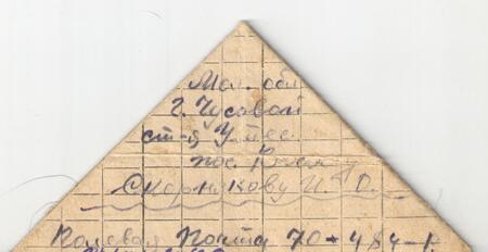 Кроме того форма письма была удобна для проверки НКВД. Так как письмо держало форму без запечатывания только за счет сложения, его было легко разворачивать и складывать обратно без следов вскрытия.
