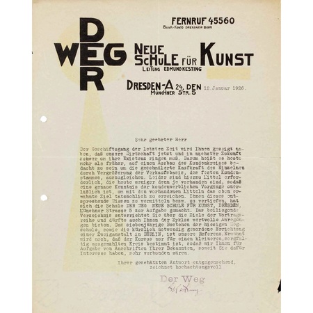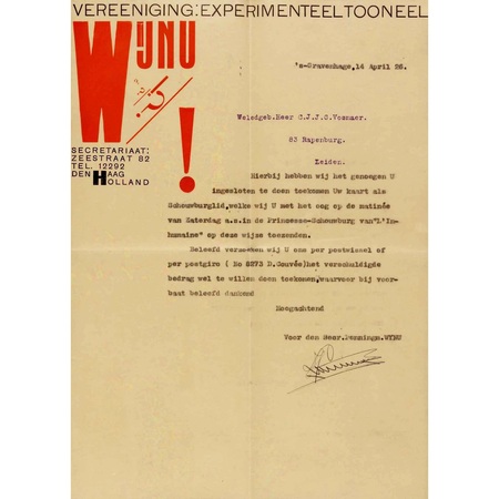 6. Эдмунд Кестинг. Письмо на бланке «Der Weg: Neue Schule für Kunst». 2 января 1926 года. 28,5×22,5 см 7. Письмо на бланке «Wij nu! Vereeniging Experimenteel Tooneel». Гаага, 1926. 11,4 x 16,2 см