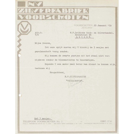 8. Письмо на бланке «Gemeente-Electriciteitswerken». Амстердам, 1933. 9. Письмо на бланке «NV Zilverfabriek». Ворсхотен, после 1927 года. 27,3×21,2 см