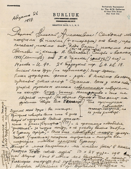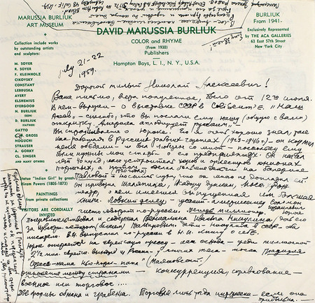 23-24. Давид Бурлюк. Письмо на личном фирменном бланке. Нью-Йорк, 1958. 29 × 21,5 см