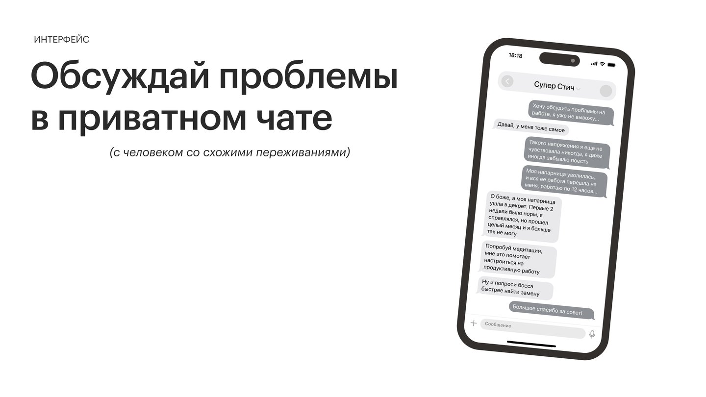 Сервис не занимается постановкой диагнозов и назначением терапии, но даёт возможность выговориться, снизить внутреннее напряжение и почувствовать, что с тяжёлыми мыслями человек не остаётся один.