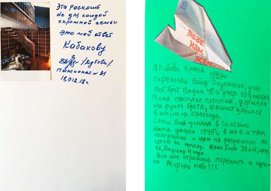 Работы из серии «Наши ответы Илье Кабакову». Куратор Екатерина Муромцева. 2019