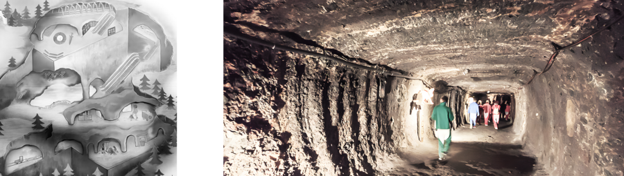 Схема вертикального устройства соляной шахты (разрез), Величка, Польша