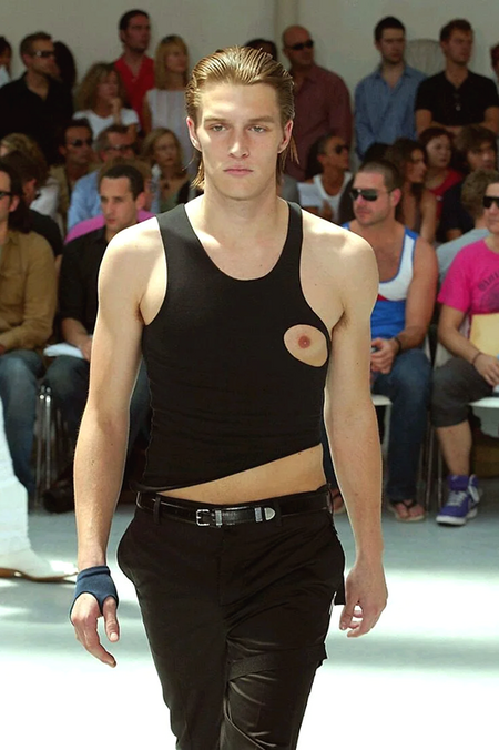 В моде аналогичную роль играет выведенная наружу конструкция одежды. Наружные швы, распоротые подкладки и общий эффект незавершенности — все это входит в поле зрения современного человека. Так идеализированная чистота уступает место деконструкции, оголяющей правду.
