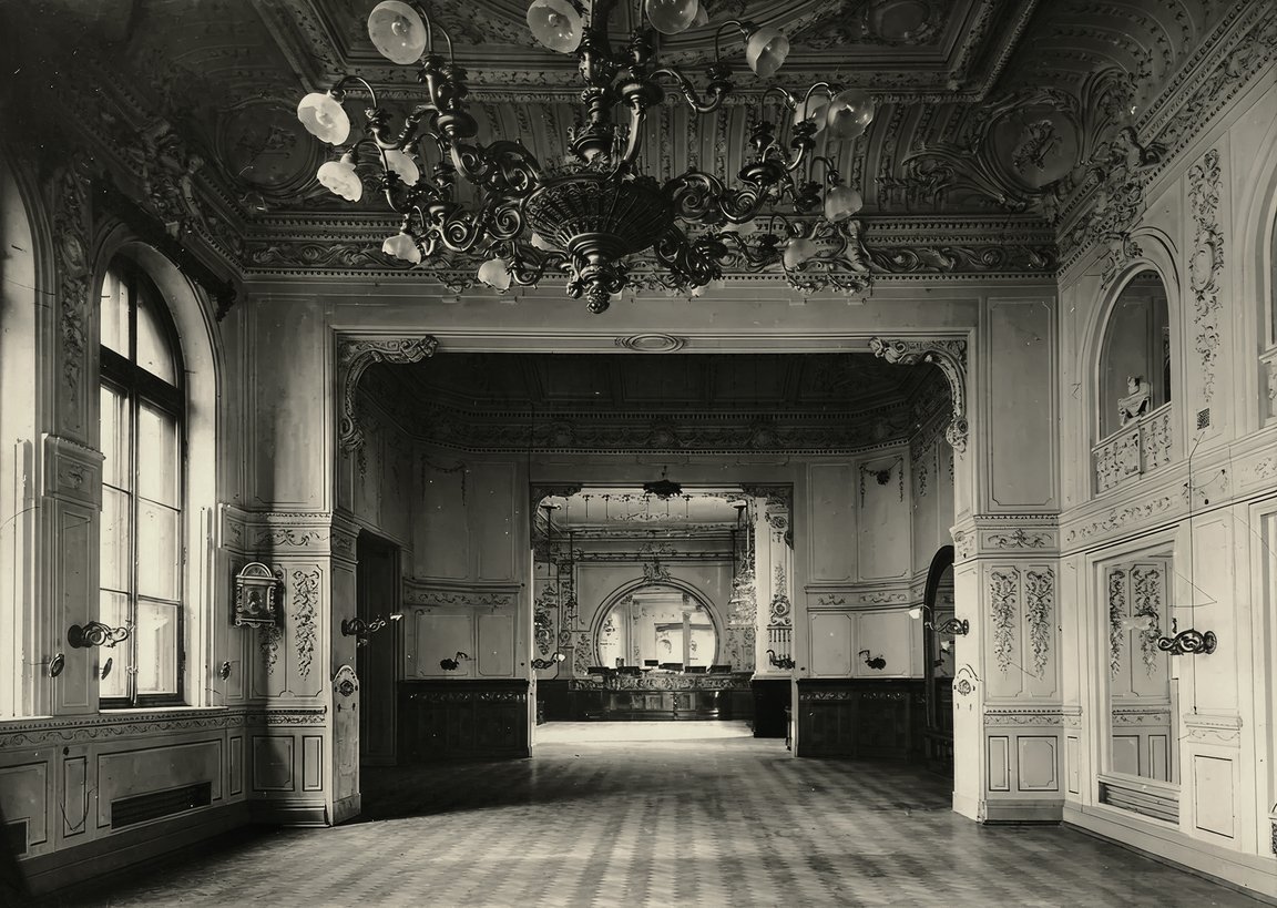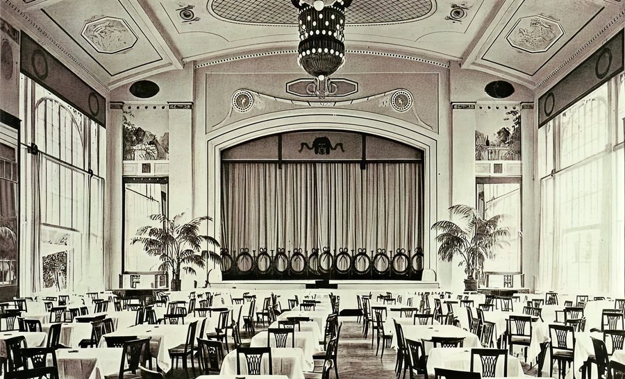 Визуальные коды того времени строились на понятие «репрезентативности». Ресторан служил пространством демонстрации общественного положения. Золотые орнаменты, бронзовые светильники, позолоченные меню с гербами — всё это создавало единый язык материальной роскоши.