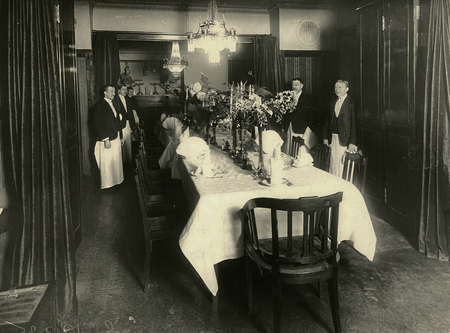 Официанты у сервированных столов в ресторане «Зимний сад». 1932 год