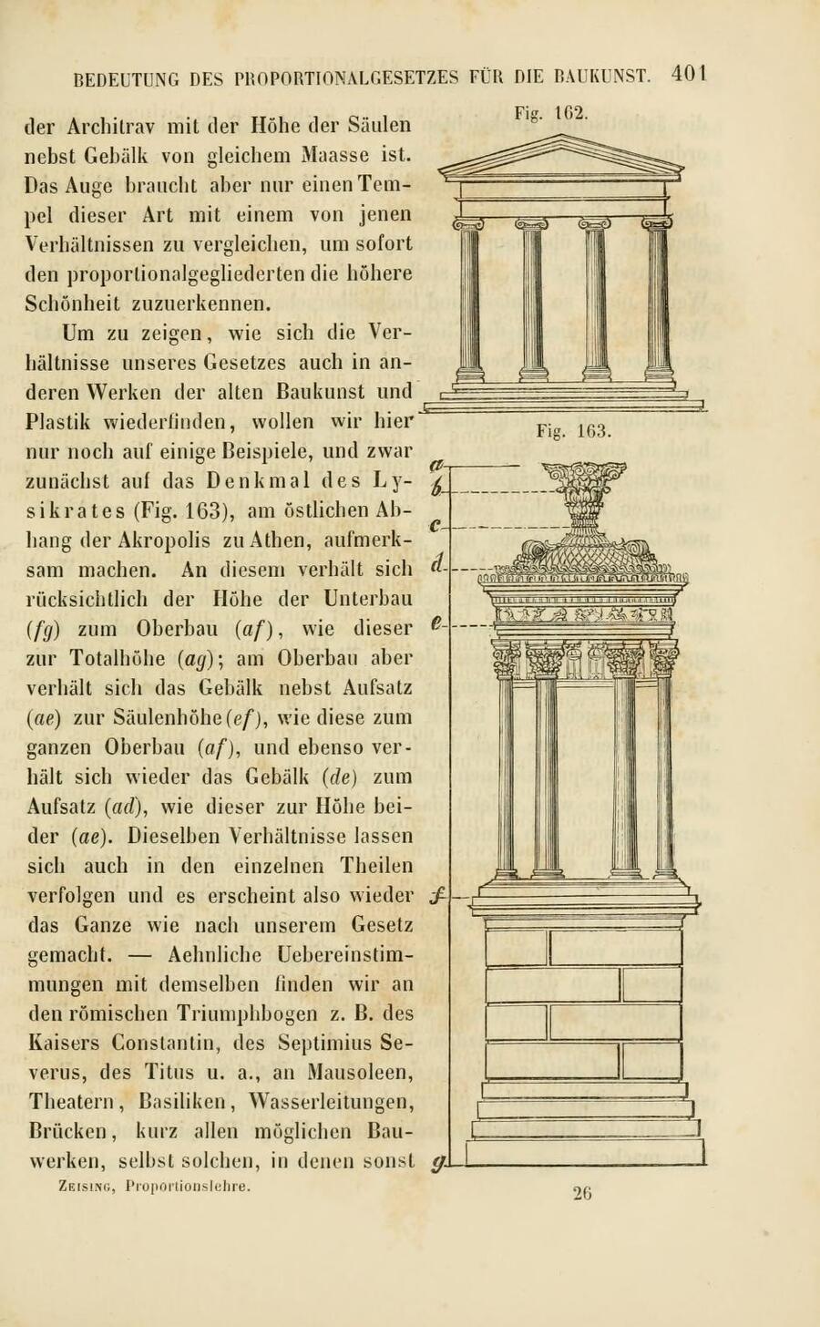 «Цейзинг пытается обосновать свою гипотезу также и на объектах архитектуры, в частности, на Парфеноне. За эту попытку А. А. Парланд подверг его разрушительной критике. В частности, Цейзинг утверждает, что высота карниза Парфенона в сумме с высотой фриза относятся к высоте архитрава в „золотой“ пропорции.