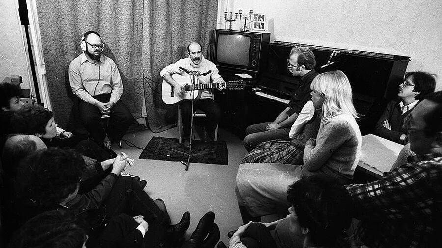 Слева — квартирник Бориса Гребенщикова* и его группы «Аквариум», справа — квартирник Александра Розенбаума, 1980-е