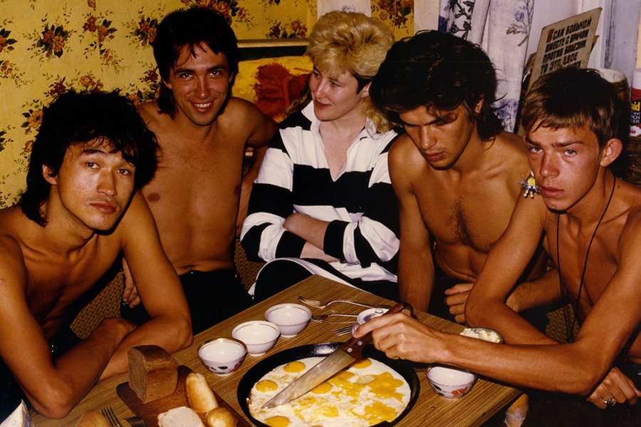 1 — Сергей Курехин, Джоанна Стингрей и Борис Гребенщиков*, в коммунальной квартире БГ*, 1985 2 — Цой, Курёхин, Стингрей, Каспарян, Африка, в коммунальной квартире БГ*, Ленинград, 1985