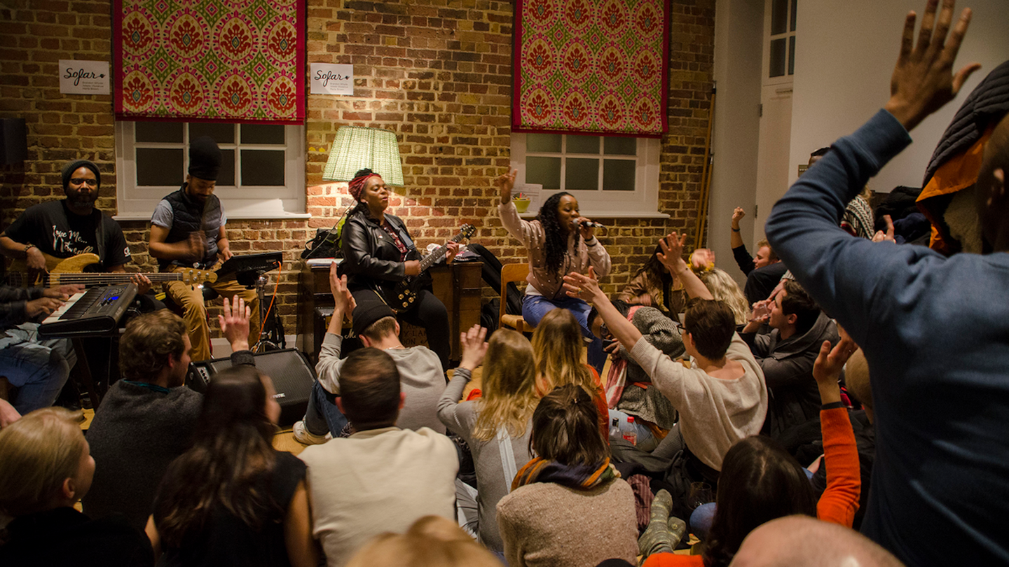 Еще один вариант секретных концертов — Sofar Sound. У них есть единая дизайн-система и единая коммуникативная форма — артисты заранее неизвестны. Платформа Sofar Sounds выстроила одну из самых последовательных визуальных моделей «невидимых» концертов на Западе. Они придерживаются принципа камерности: нестандартные локации (квартиры, лофты, мастерские), минималистичное техническое оформление, отсутствие сцены в привычном смысле. Но при этом сеть этих концертов огромна: они проводятся в самых разных горадах и даже странах. Они не нуждаются в рекламе, все строится на доверии.