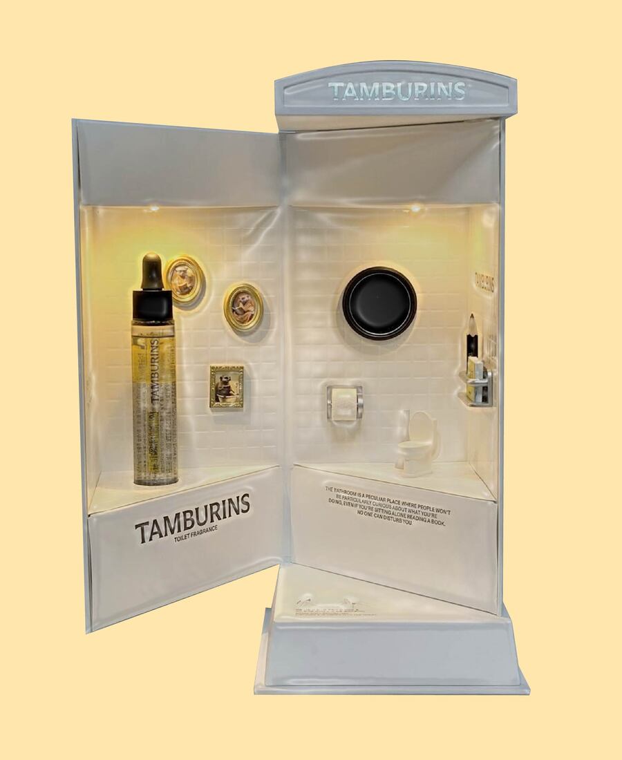 Идея упаковки набора туалетных ароматов Tamburins Toilet Fragrance Kit заключается в превращении обыденного опыта посещения туалета в уникальное, многосенсорное и приносящее удовольствие приключение.