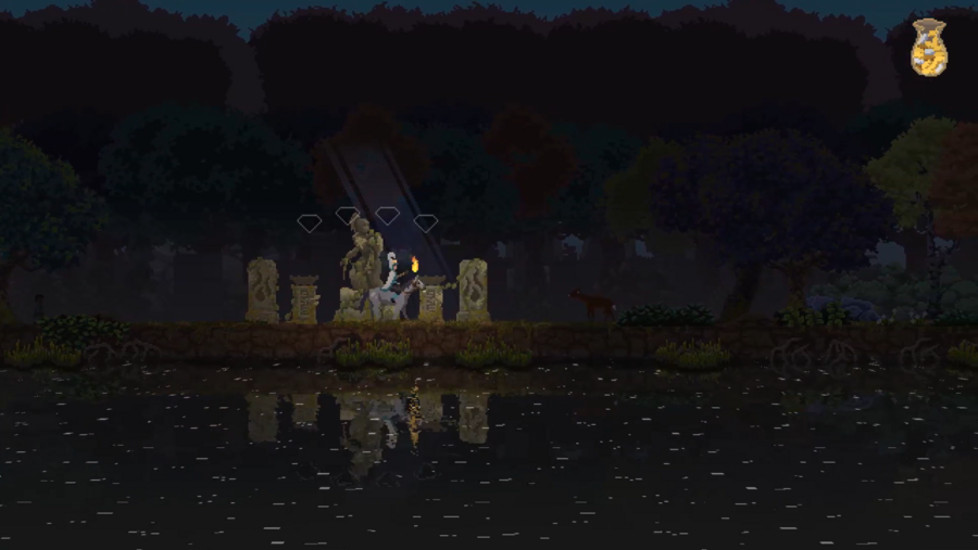 Kingdom Two Crowns — шедевр минимализма и диегетики. В этой игры нет никаких меню, кнопок и полосок здоровья. Всё, что у вас есть, — это ваш персонаж, монеты в кошельке (которые физически находятся у вас на поясе) и корона, которая служит вашим «здоровьем» — её отбирают, когда вас атакуют. Ваша «команда» — это подданные, которых вы нанимаете, давая им монеты и инструменты. Весь интерфейс — это сам мир. Вы не управляете королевством через таблицы, вы правите им, физически перемещаясь по своим владениям.