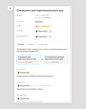 Ответственность за задачи Невозможно отследить, кто именно отвечает за конкретный элемент на конкретный момент времени, что приводит к ситуации «крайнего» в день мероприятия.