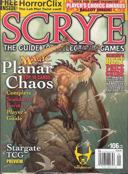Обложка журнала Scrye — основного печатного источника информации о ценах, стратегиях и новостях ККИ в эпоху до интернет. Обложка Scrye Issue #65 реклама MTG Arena