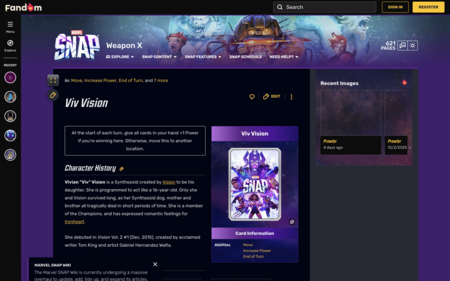 Скриншоты из сайта Fandom по игре Marvel Snap