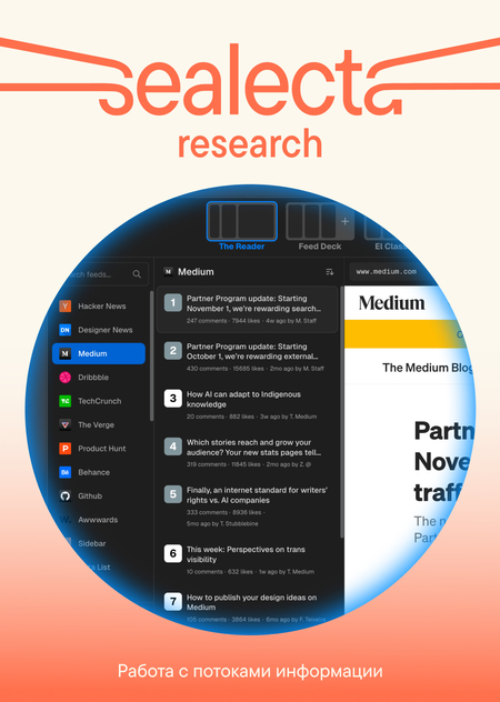 Автоматические агрегаторы в формате браузерных расширений подменяют стартовую страницу браузера на ленту новостей и контента для вдохновения. Panda и Muzli собирают материалы из десятков и сотен источников, моментально обновляют выдачу и подбирают ленту под интересы пользователя. Однако у таких сервисов есть слабые стороны — лента остаётся автоматической: она не предлагает организованной логики, не содержит авторских комментариев и не помогает собирать найденное в структурированные подборки.