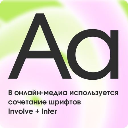 Цветовая палитра состоит из 3 цветовых пар, характерных каждому маскоту. Как шрифтовое решение были выбраны Involve для заголовков и Inter для наборного текста. Заголовки в креативах обязательно оформляются белой плашкой.
