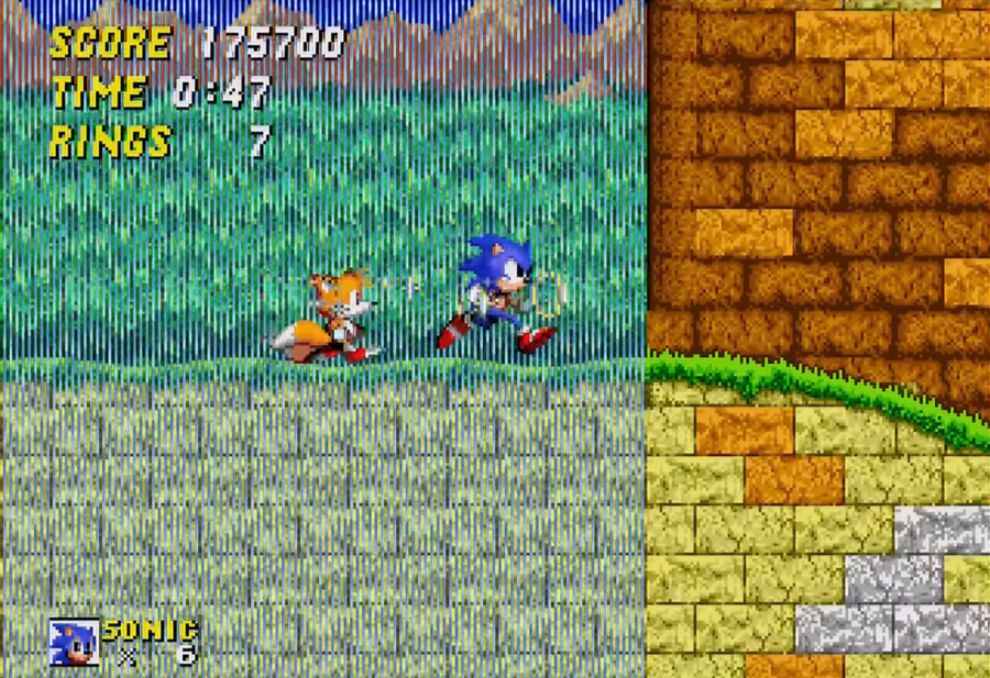 Также показательный пример: Sonic the Hedgehog 2 (Sega Genesis). Знаменитые «зоны» (Chemical Plant, Hill Top) с их градиентами и диагональными платформами. На CRT это была феерия плавных переходов. На LCD мы видим четкие цветовые полосы и зубчатые края.