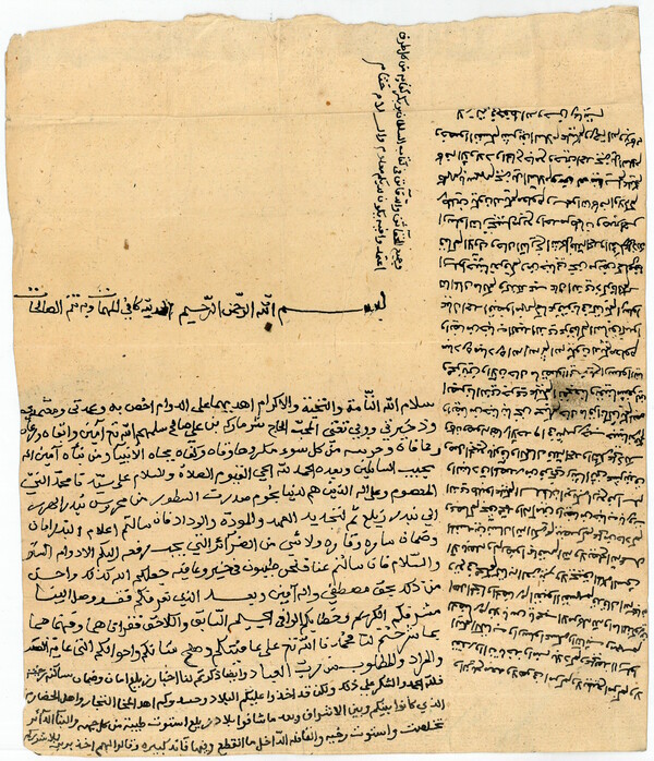 На одной стороне листа расположены два послания схожего содержания. Оба письма адресованы известному сомалийскому лидеру и губернатору Шармарке Али Салеху (1775–1861). Автор сообщает о ситуации в месте правления губернатора, где тот, судя по всему, отсутствовал.