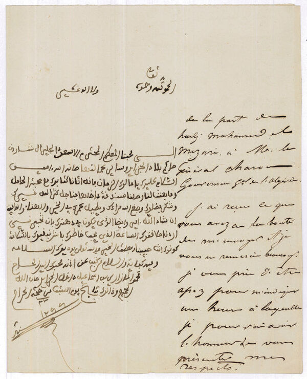 6. Эль Мезари, Мохамед. Алжир, 1849/50. Бифолио 7. Абделькадер аль-Джазаири, эмир Маскара, алжирский борец за свободу. Вероятно, Дамаск, 24 августа 1865 года. 310×210 мм