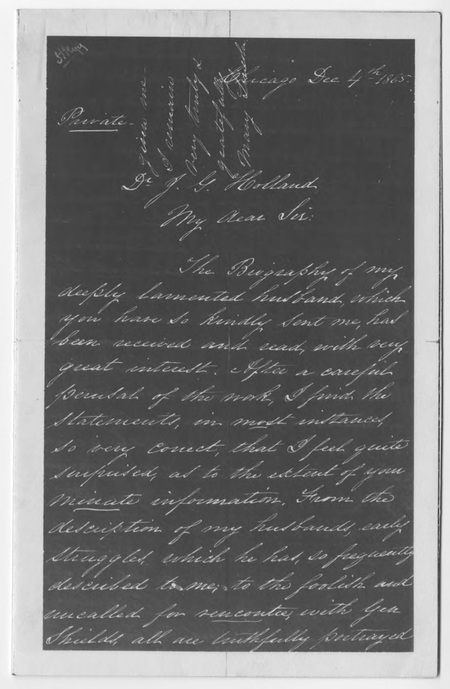 12. Чарльз А. Джуэлл родителям. 19 апреля 1865 г. Формат неизестен 13. Мэри Тодд Линкольн доктору Джозайе Г. Холланду. Чикаго, 4 декабря 1865 г. Формат неизестен