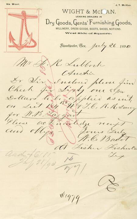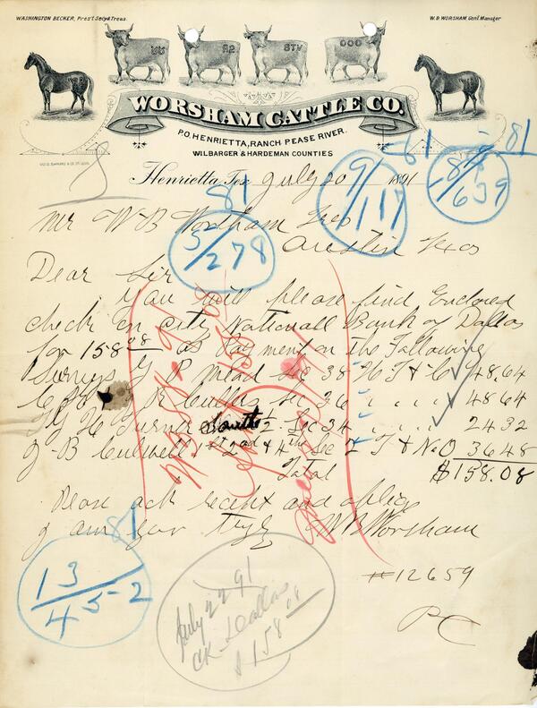 30. Неизвестный автор. Письмо на бланке «Wight & McHan». Место неизвестно, 1890. 31. Неизвестный автор. Письмо на бланке"Worsham Cattle Co». Место неизвестно, 1891. Форматы неизвестены