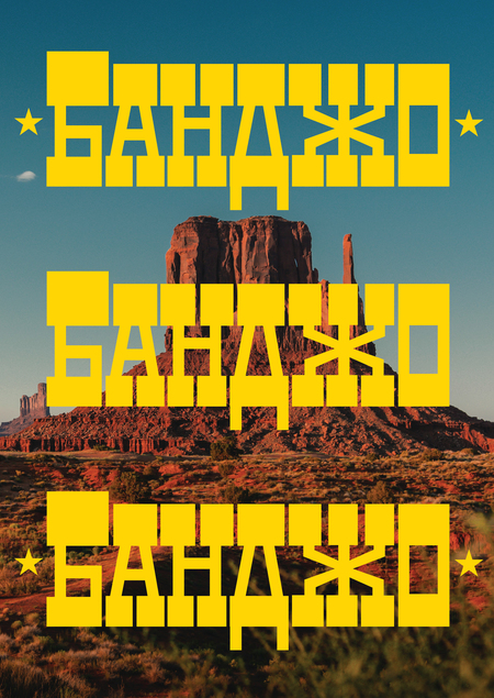 The logo (1) refers to Western movie fonts, and it is through large strings and contrasts that a Western atmosphere is created.