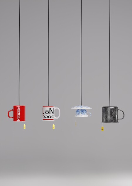 Абажуром таких светильников являются самые распространённые кружки, которые можно найти в каждом доме. Для данной серии дизайн кружек был переработан, чтобы не нарушать чужие авторские права. Свисающие с потолка кружки определенно могут удивить многих.