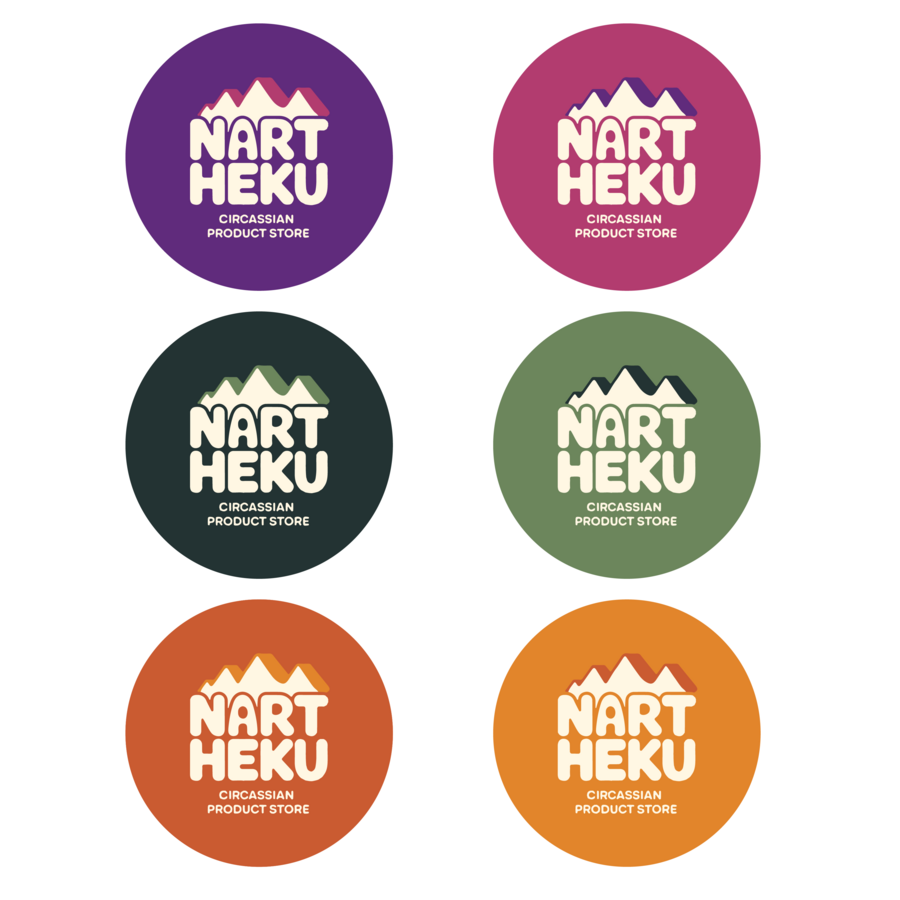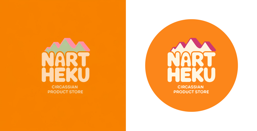 /imagine prompt: Create a logo for the Circassian culture festival product store. The logo should include the name «NART HEKU». It is desirable to have ethnic patterns or just mountains, minimalist logo. Colors can be: beige, soft light green, orange, purple, pink, gold.