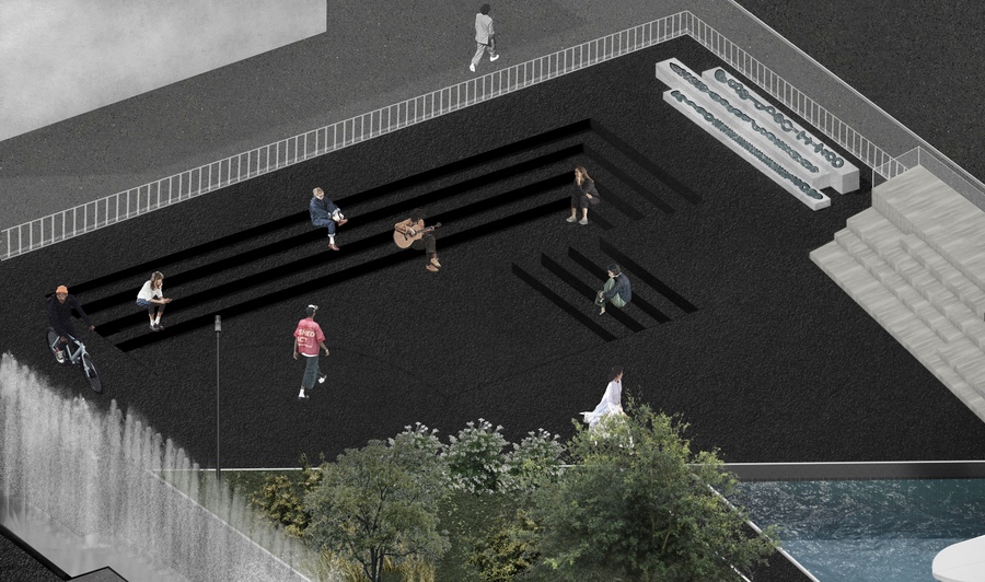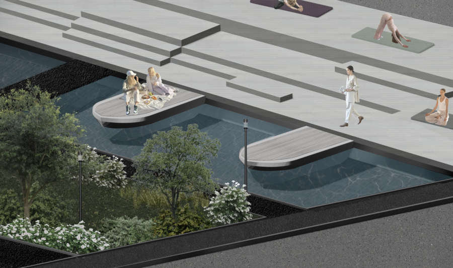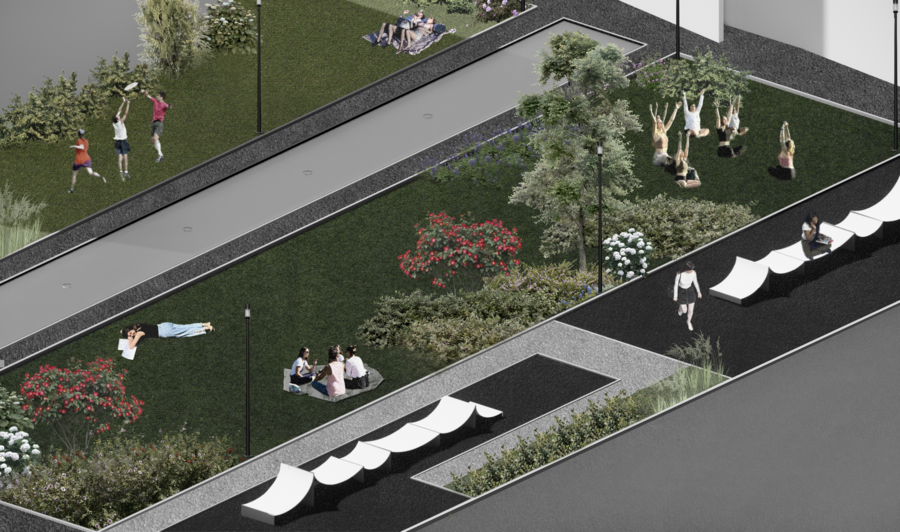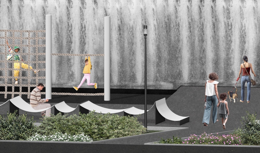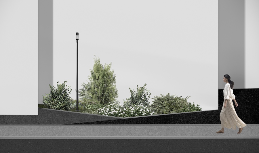 Концепция благоустройства — размеренная и спокойная ат-мосфера, комфорт и удобство, эстетика и стиль, повторяющий абстрактное творчество Николя де Сталя