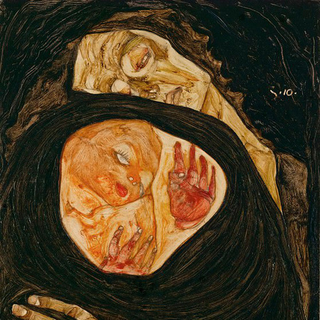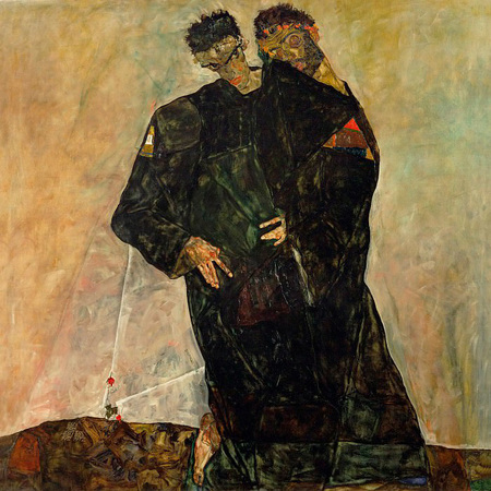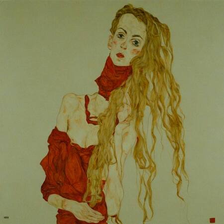 2. Общее тревожное и болезненное настроение, присущее работам Шиле, было успешно зафиксировано: холодные и землистые тона, мертвенно-бледные оттенки кожи, а также выраженные тени и пустоты фона создают ощущение эмоционального напряжения.