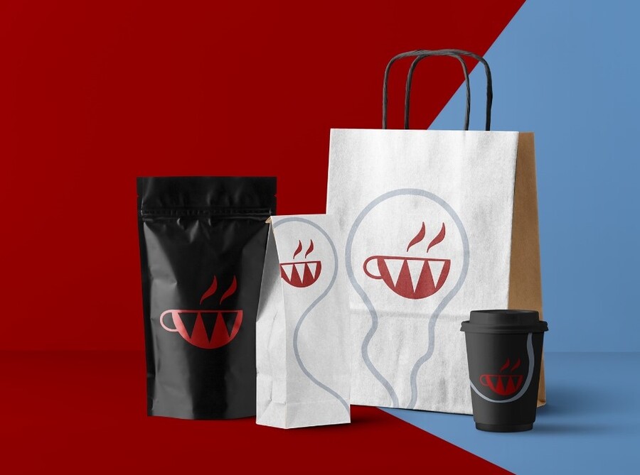 Промпт для продукции бумажные стаканчики: Stylish and playful paper tea cup designs for a monster-themed café, emphasizing a clean, white base with bold red and charcoal black accents. The cups feature a minimalist fang motif wrapping around the lower half, using sharp white triangles against a deep red stripe for a striking effect. Above, the café’s logo—a steaming cup with fang-like details—is prominently displayed in deep red. Subtle soft gray claw marks or steam swirl patterns are scattered across the white background, adding texture without overwhelming the design. The lid is charcoal black for contrast, with the option of a muted tan sleeve adorned with the café slogan, 'Scarily Good Tea, ' in bold, handwritten-style text. The overall aesthetic is modern, whimsical, and perfectly balanced to reflect the monstrous yet inviting theme of the café