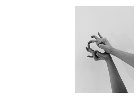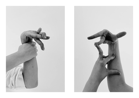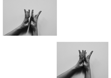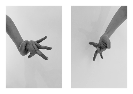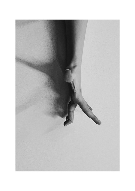 Я выражаю смысл слов «гнуть свою линию» в контексте его телесного проявления через жестикуляцию кистей рук. От природы у меня подвижные фаланги пальцев, которые я могу выгибать в разные стороны. Это стало способом визуализации физического смысла устойчивого выражения.