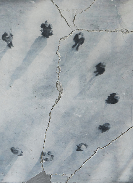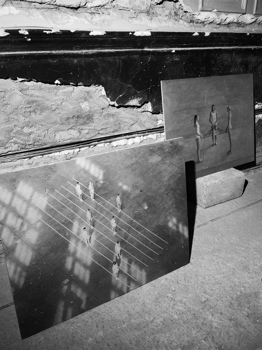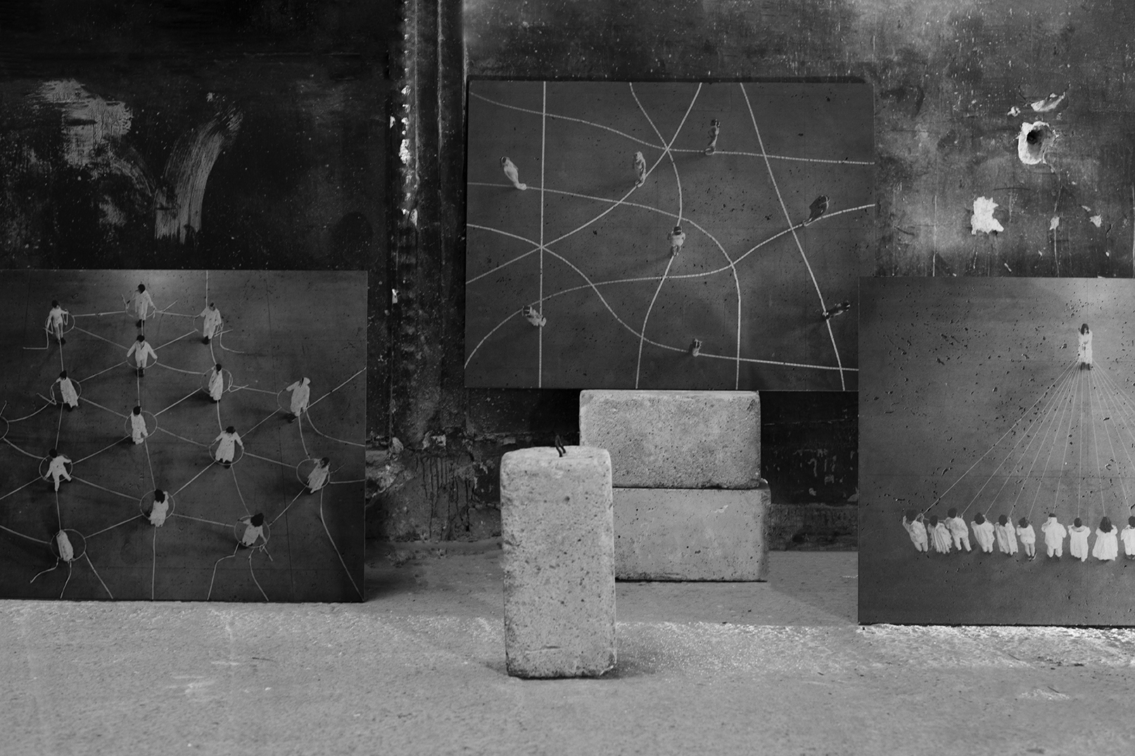 Серия Psychomachia*. Это экспериментальный фотопроект по поиску языка для разговора о душе. Фотографии серии нанесены на бетонные пластины.