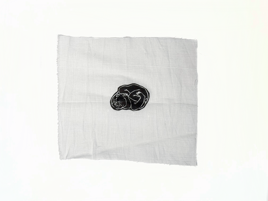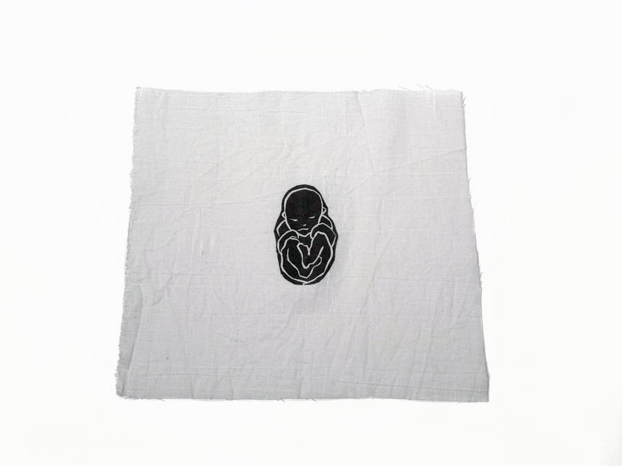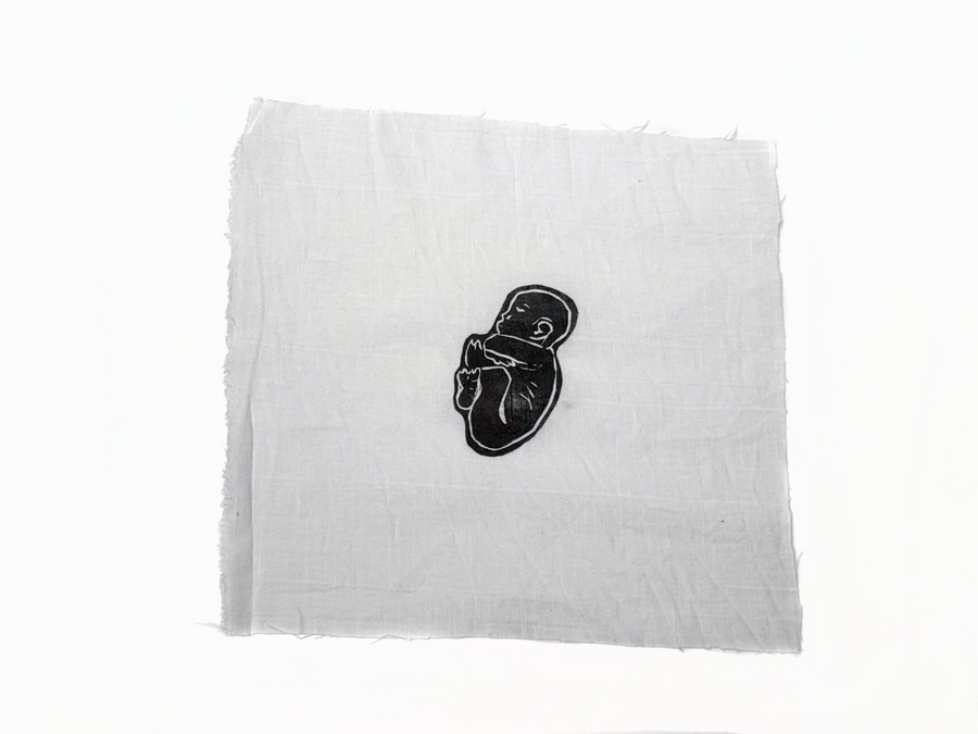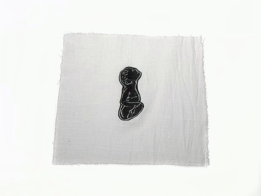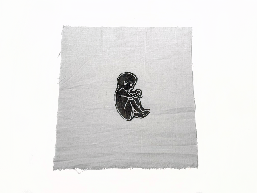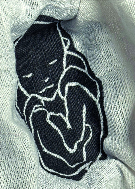 Печатная серия «Внутри» выполнена на отрезках льняной ткани, помещённых в индивидуальные шкатулки в виде свертков-коконов. В них прячутся зародыши.