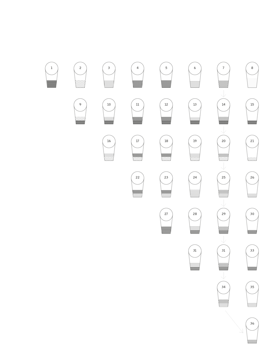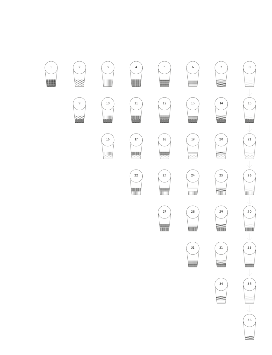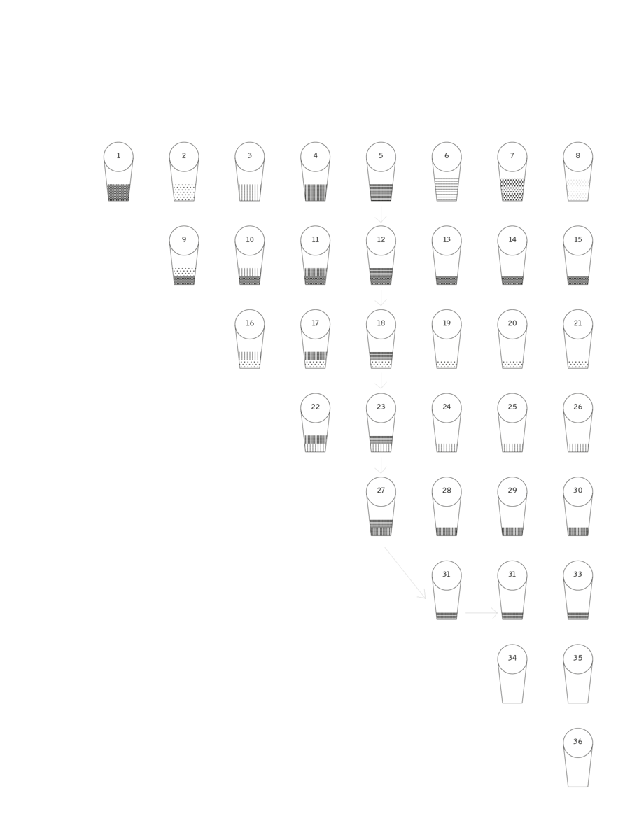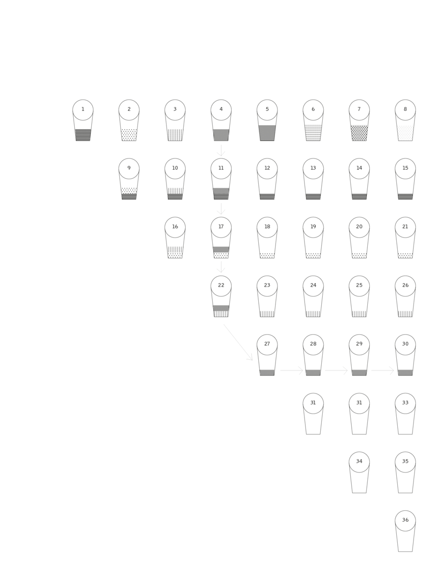 На иллюстрации ниже изображены стаканчики, где есть оксид Хрома. Получается на каждую базу + красящий оксид приходится по 8 стаканчиков, причемв стаканчике из которого берется суспензия, должно остаться 5 мл.