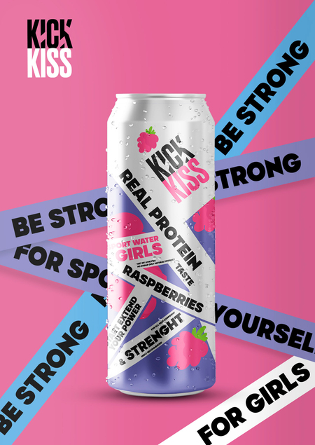 KICK KISS — это бренд спортивных напитков для ярких девушек, которые ведут спортивный образ жизни, много тренируются и никогда не сдаются. Отжаться, подтянуться или постоять в планке для них не проблема, а с тонизирующей газировкой фотки из зала выглядят ещё симпатичнее!