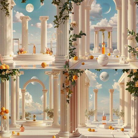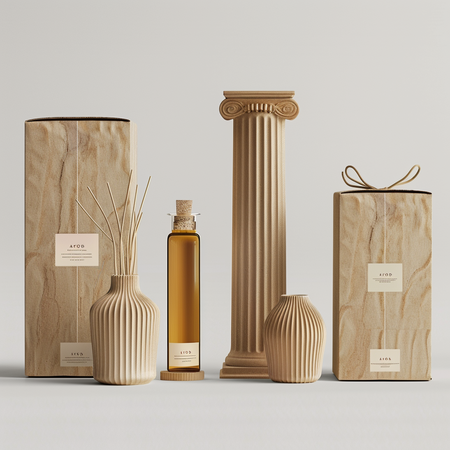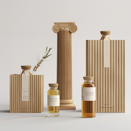 Все изображения сделаны с помощью Midjourney. Примеры промтов: paper bag design for aroma oil brand named Arooma inspired by greek columns