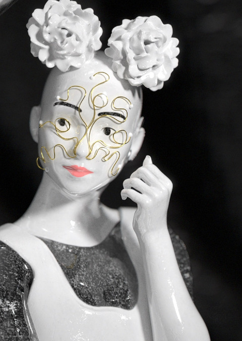 Дженнифер Линг Датчук, получившая образование в области керамики, исследует наследие китайского сине-белого фарфора. Художница специально подстригла себя «под горшок» и осветлила свои черные волосы, чтобы нанести традиционные китайские узоры: