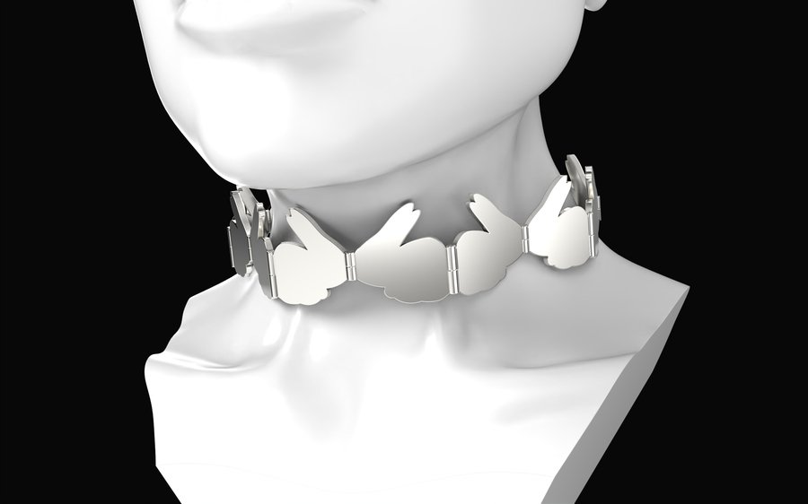 Коллекция украшений, разработанных в рамках практики представляет собой набор парных сережек и колье вдохновленных праздничными гирляндами из бумаги, которые делают дети. Серьги раскладываются и складываются в гармошку, как это происходит с листом бумаги в процессе изготовления.